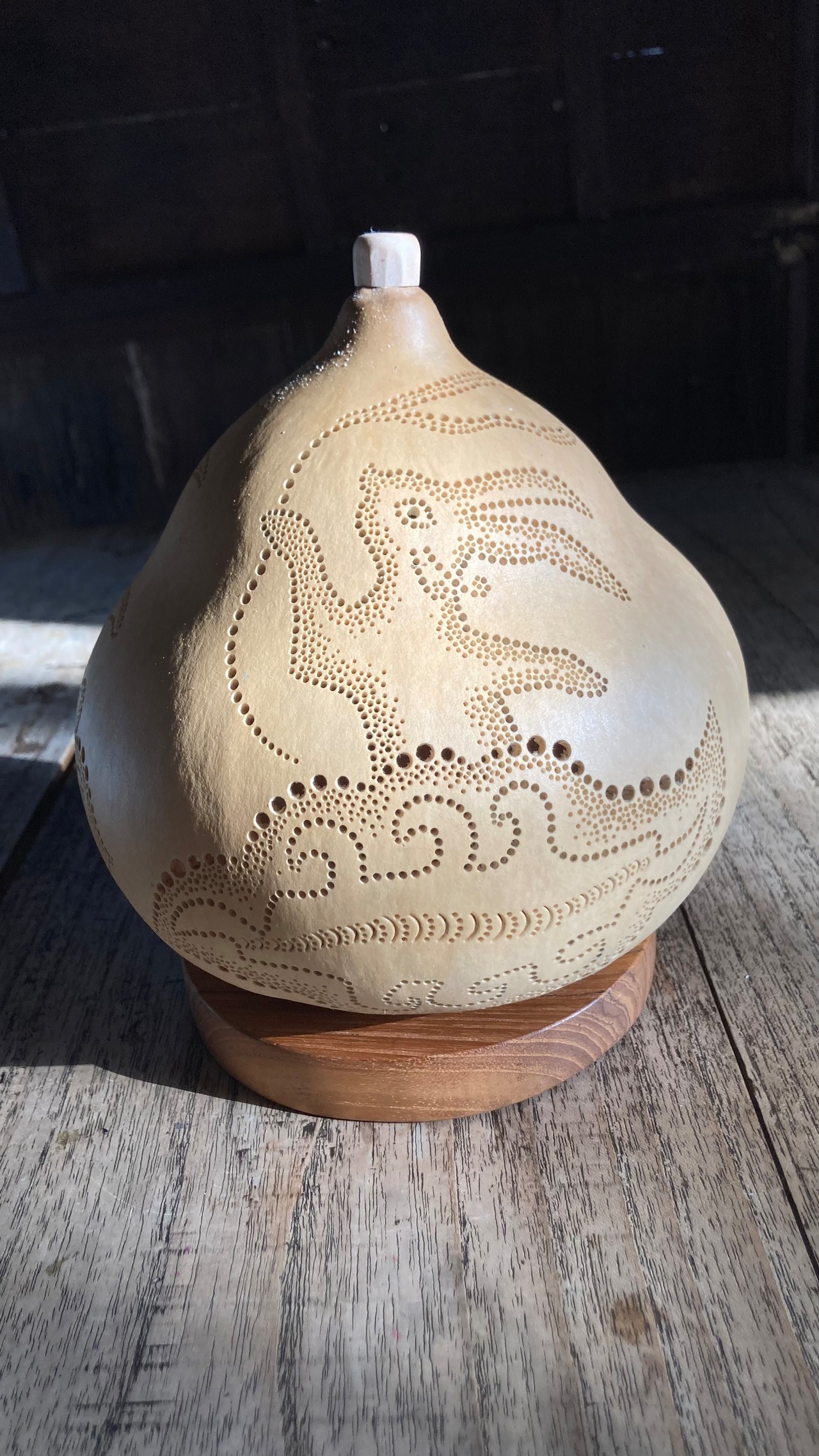 ◯スタンド台: 厚さ2cm×直径11.5cmのチークウッドを使用しています。