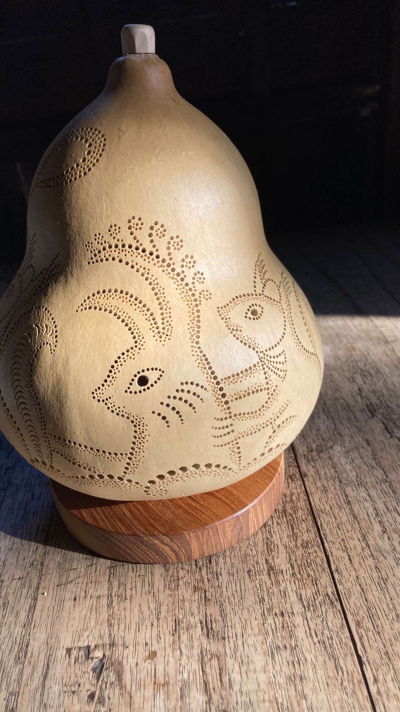 ◯スタンド台: 厚さ2cm×直径11.5cmのチークウッドを使用しています。